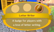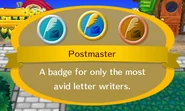 Badges are a feature in the Animal Crossing series to track progress in various fields. They are awarded by Phineas, who appears in clear weather, and only if a new badge will be earned.