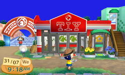 T.I.Y. is a store in the Animal Crossing series. The store is run by Timmy and Tommy. It is located between Happy Home Showcase and the Able Sisters. It will merge with the Gardening Store upon construction. It will upgrade into T&T Emporium by spending 100,000 bells at the store, passing 4 of Gracie's fashion checks, and have the store open for 30 days.